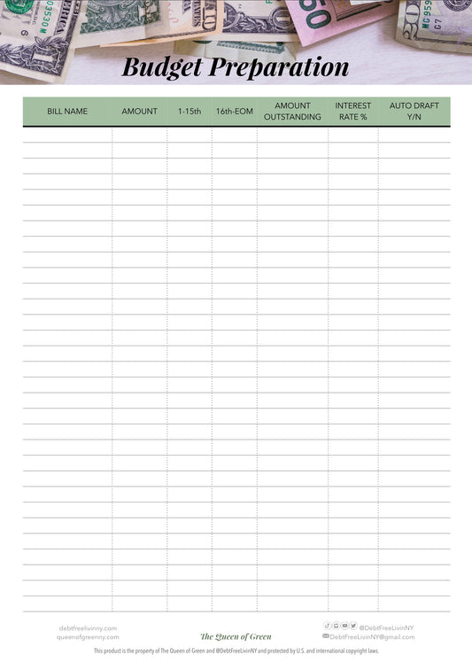 1/2 hour pre-budget 1:1 consultation zoom call 1/2 hour post-budget 1:1 consultation zoom call A completed 3 month budget including a comprehensive summary All digital files completed