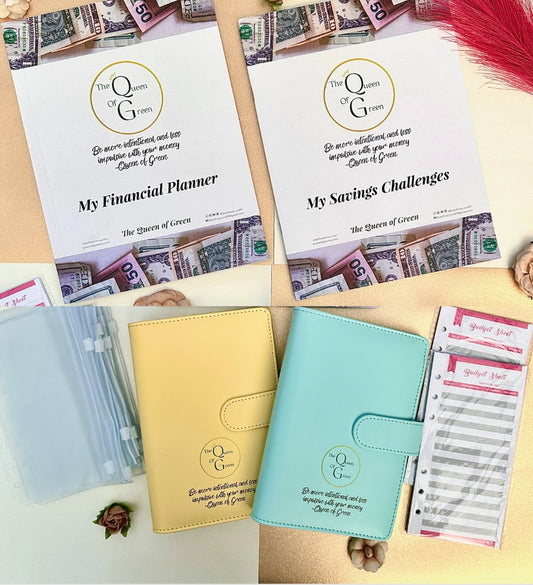 This package is the Royal Treatment. You will get a 3 month prepared professional budget, zoom call with Cheryl, budget summary, 2 cash binders, My Financial Planner & Savings Challenge workbooks and all digital files